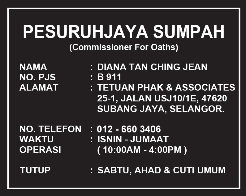 Administer oaths for relevant forms from National Registration Department (JPN), Immigration Department Malaysia and so on